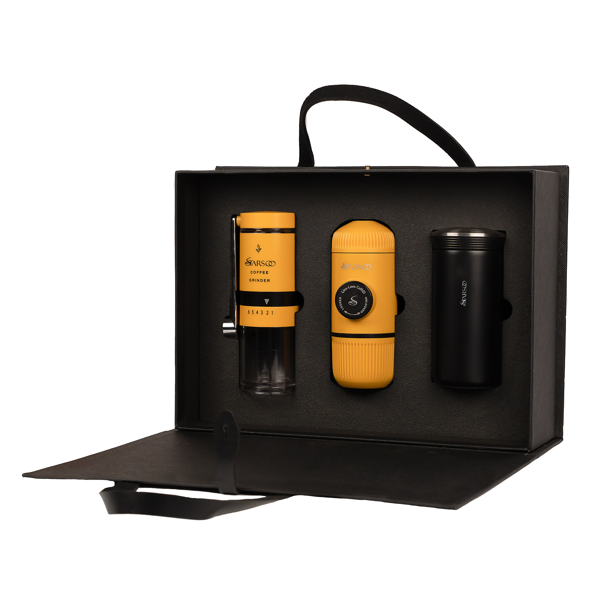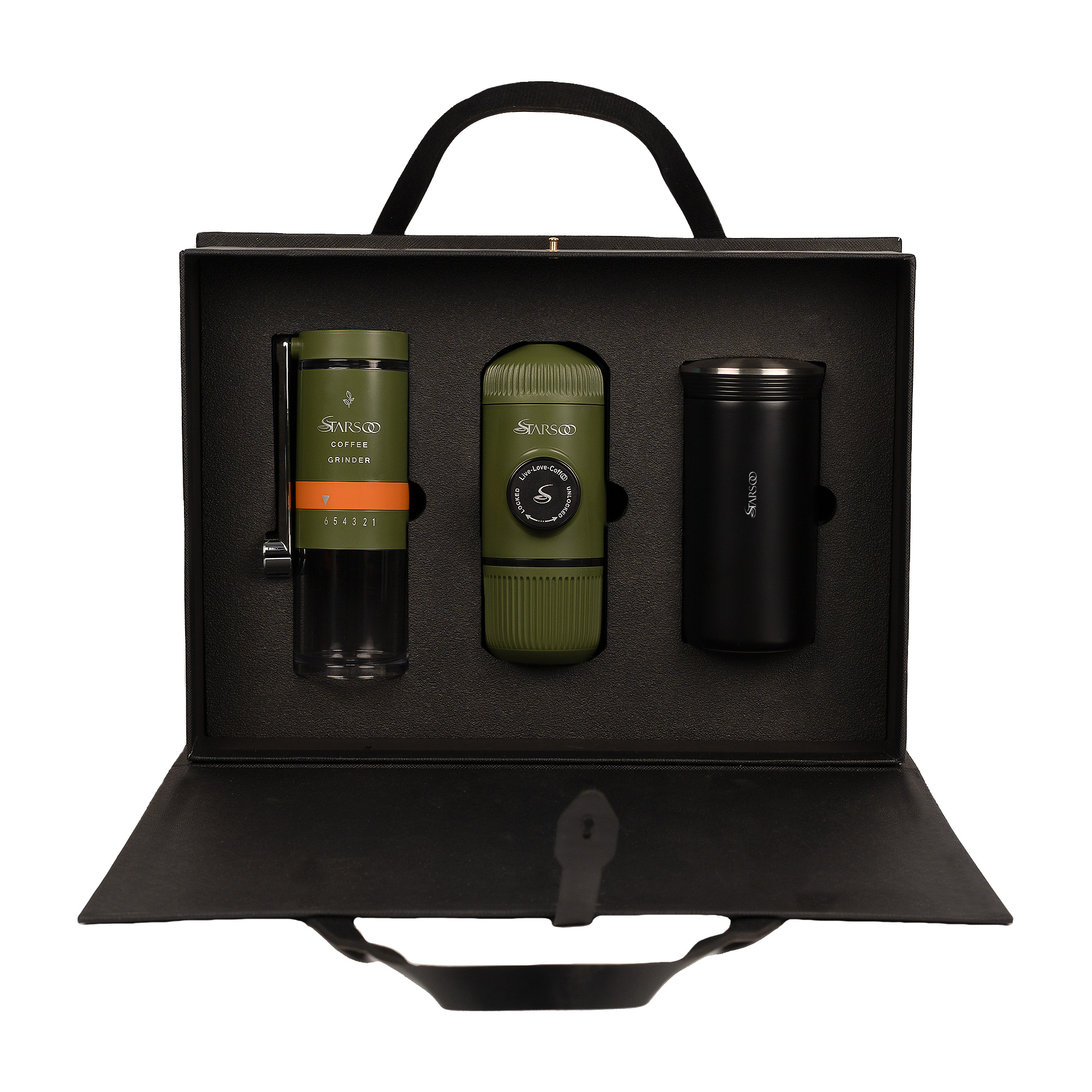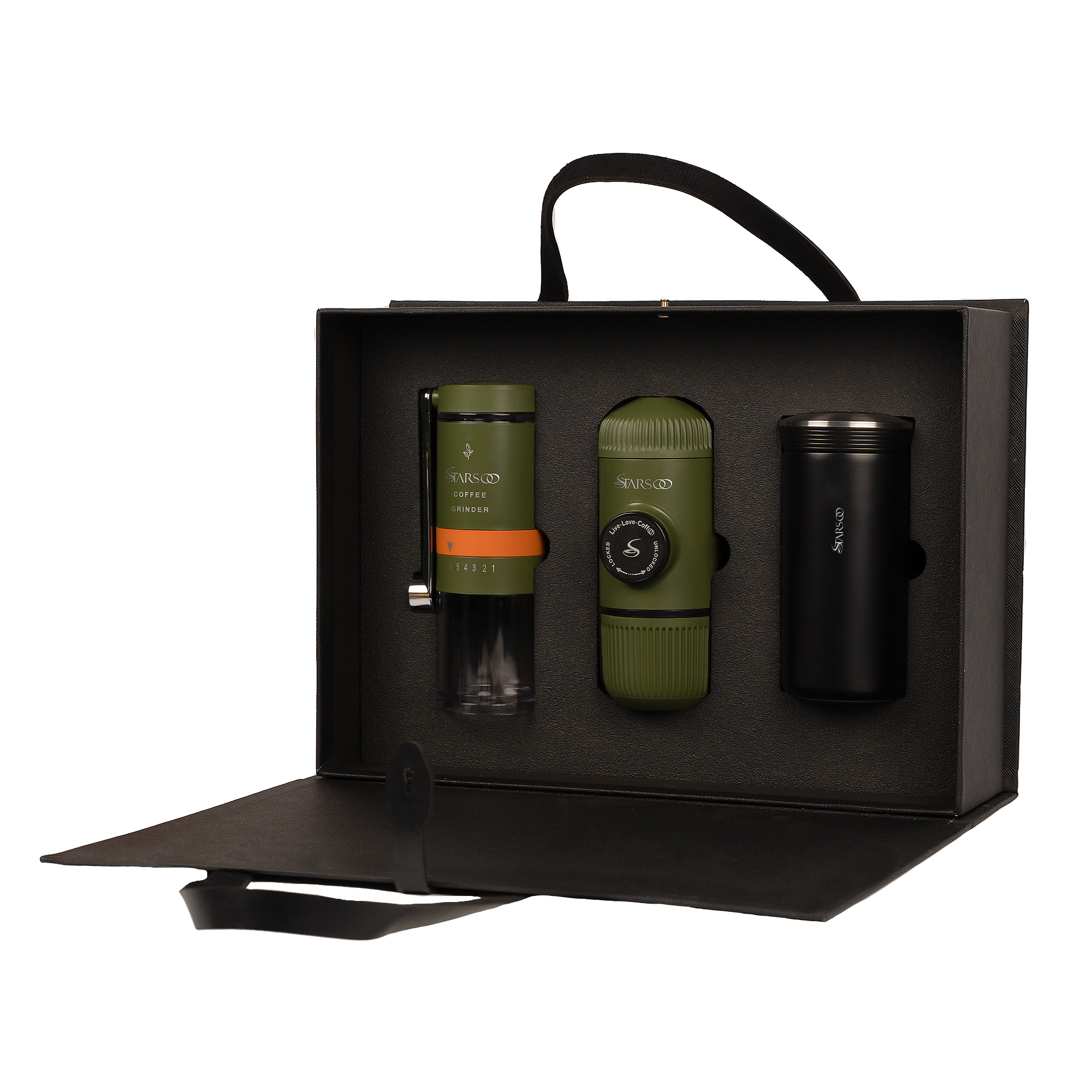 - کاربردی در سبک زندگی مدرن: تمام اجزای این پک، با هدف پاسخگویی به نیازهای روزمره طراحی شدهاند. از تهیه قهوه در سفر گرفته تا استفاده از ماگ در مسیر کار، همه چیز در این هدیه کاربردی است.